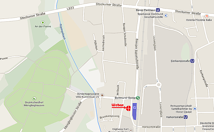 Zielpunkt ist der S-Bahnhof Dortmund-Barop. Unmittelbar gegenüber des Parkplatzes finden Sie mein Geschäft.